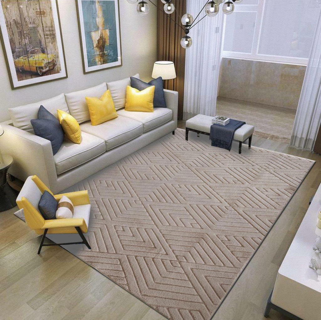 Dale un toque de sofisticación a tus espacios con esta alfombra moderna. Su textura suave y relieve en patrones simétricos crean un efecto visual único que transforma cualquier ambiente en un lugar cálido y contemporáneo.